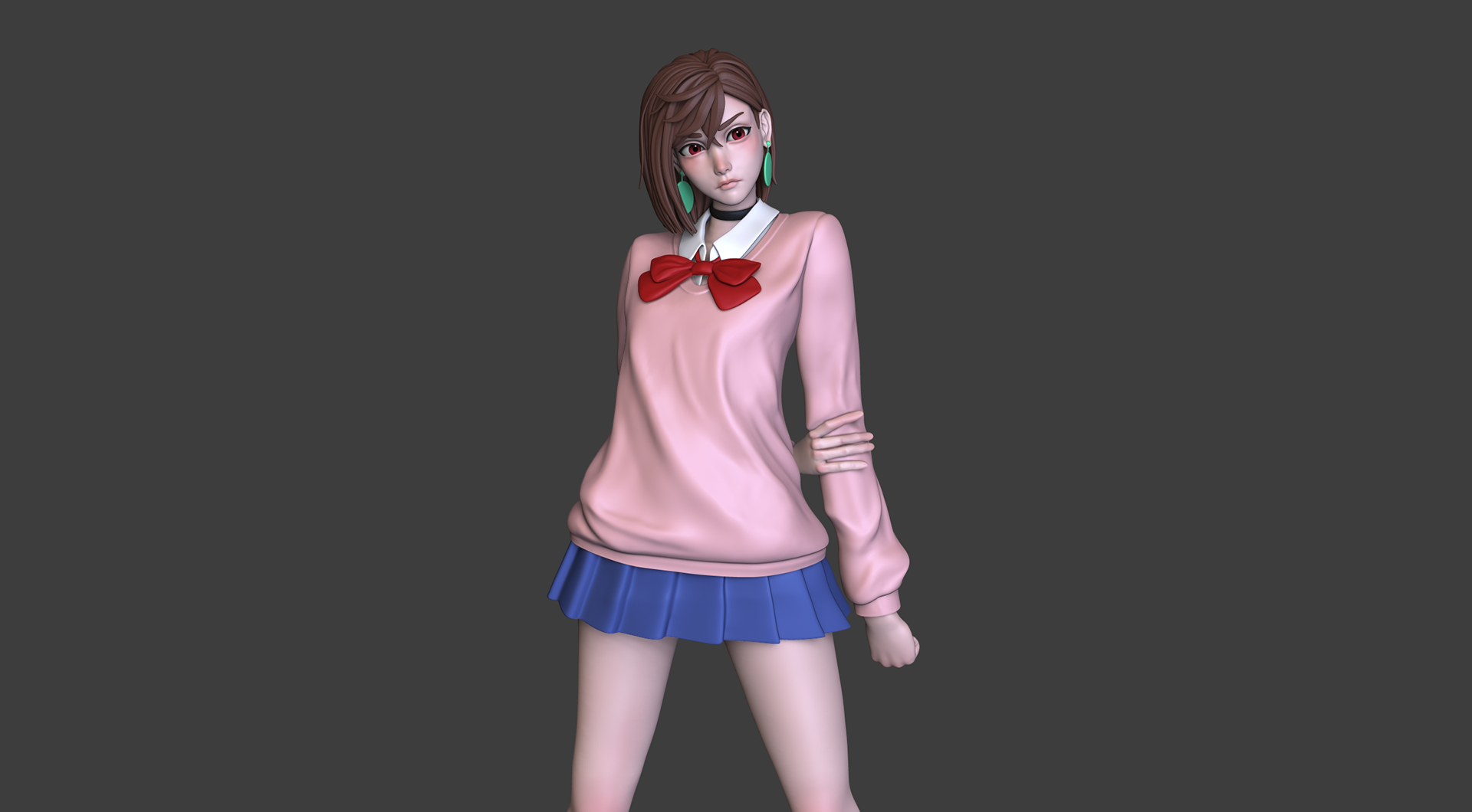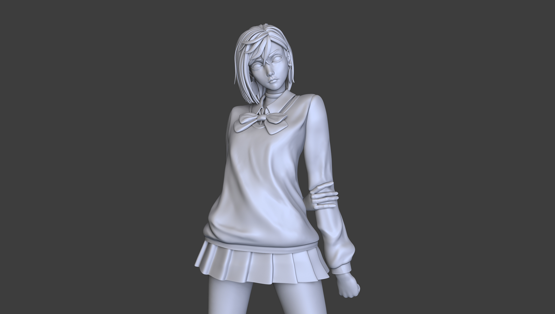 Modelagem tridimensional da personagem Momo Ayase (Dandadan) feito no Zbrush para impressão.