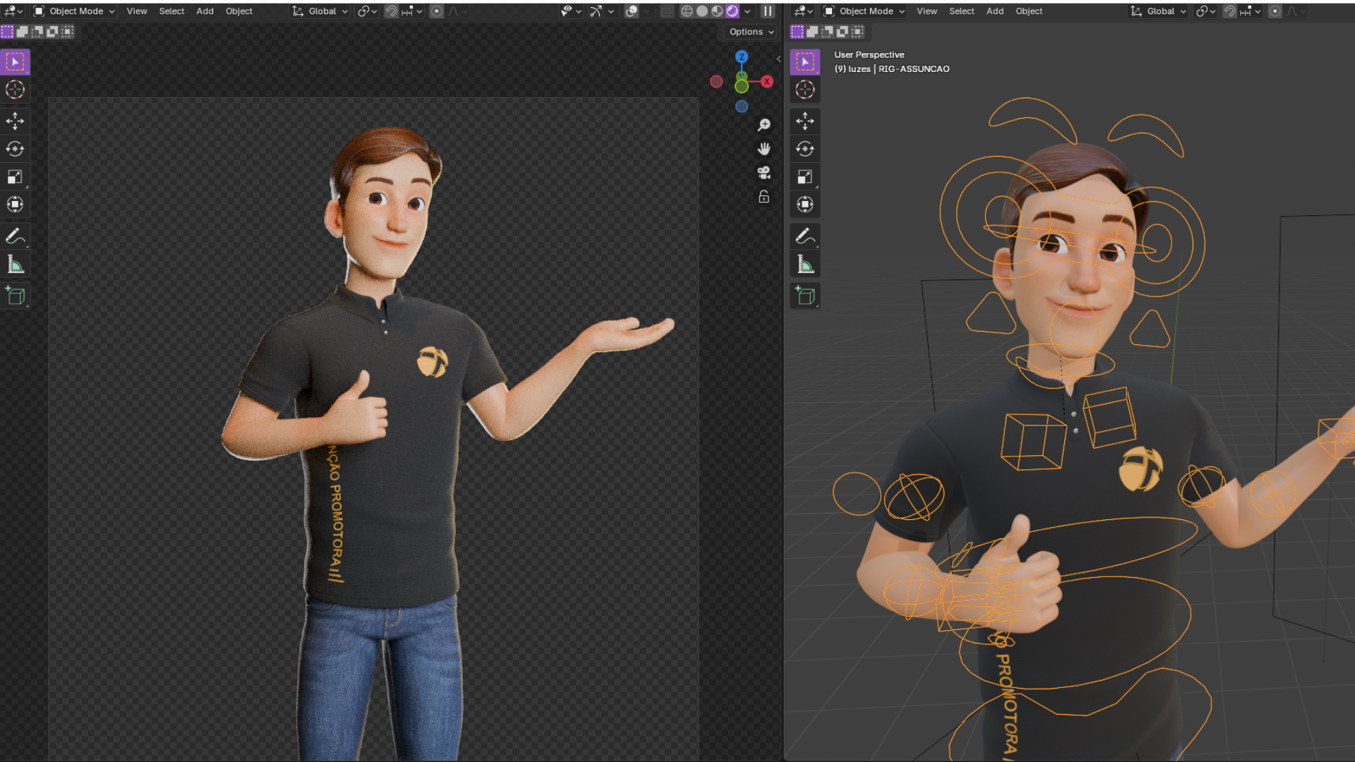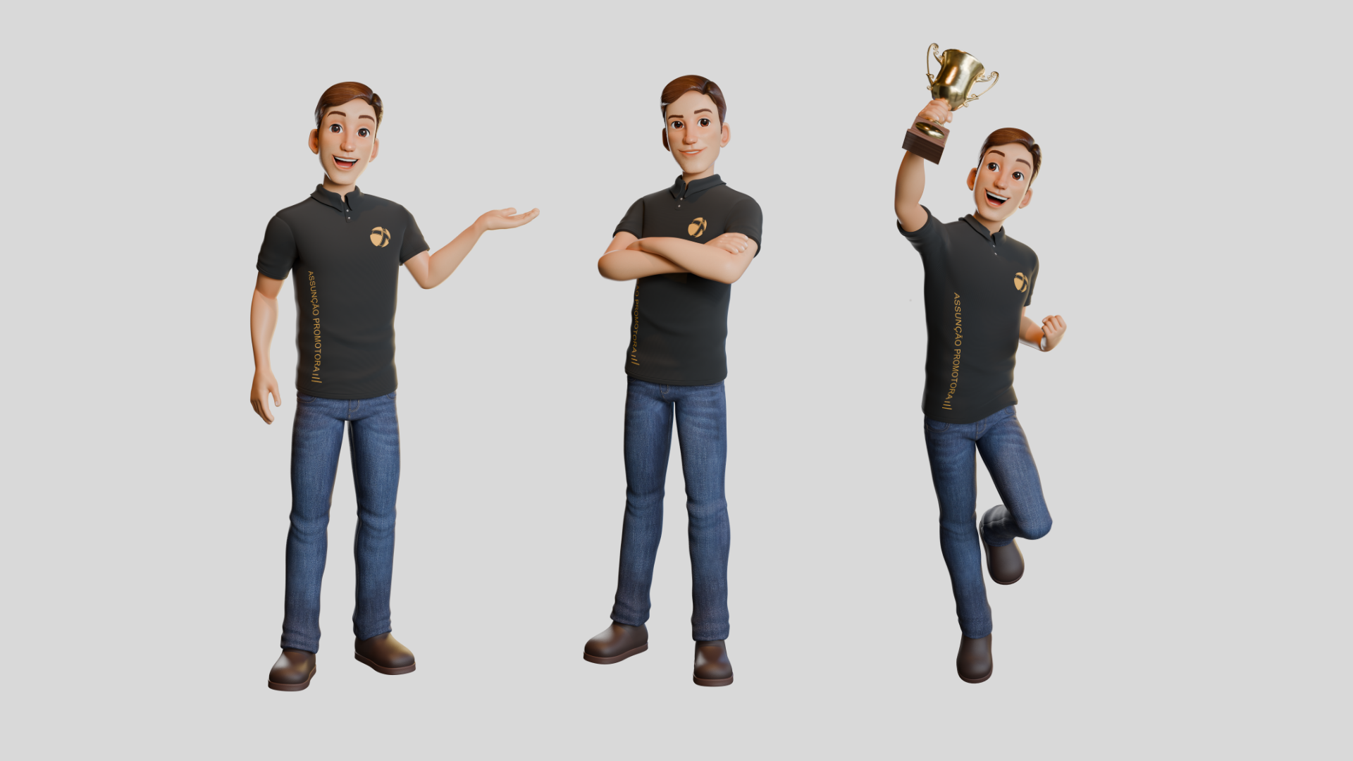 Fui convidada pela equipe de marketing da Assunção Promotora a desenvolver diferentes poses para o seu mascote 3D (já configurado com rig) com objetivo de utilizá-lo em novas peças promocionais da marca. Realizei a renderização no Cycles utilizando a iluminação em 3 pontos e cuidei de uma breve pós-produção no Photoshop, aplicando brilho especular nos olhos para trazer mais vida ao personagem. Durante o processo pude aprofundar meus conhecimentos sobre rigging no Blender.