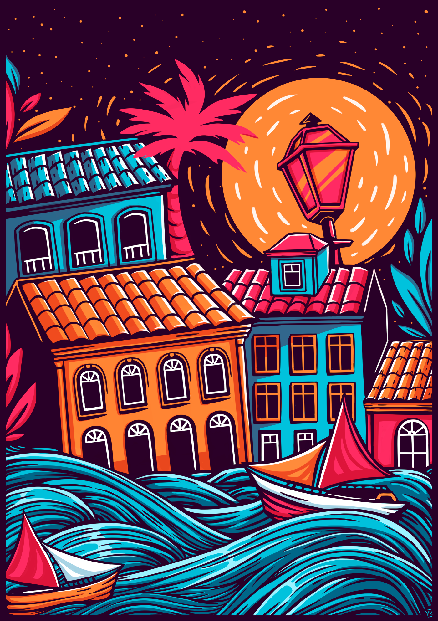 Ilustração feita em homenagem aos 410 anos da cidade de São Luís para produção de cangas de praia em parceria com o Portal Imirante.com.