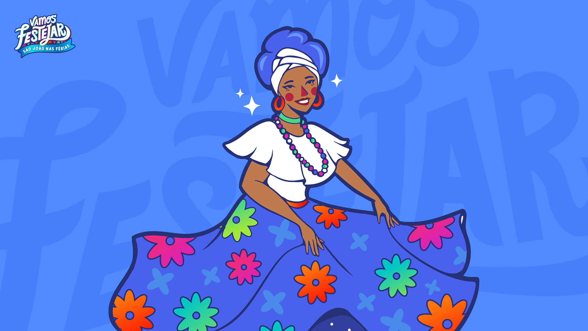 O "Vamos Festejar - São João nas Férias" foi um projeto cultural realizado pela Fundação da Memória Republicana Brasileira (FMRB), com apoio da Lei de Incentivo à Cultura. O evento teve como objetivo resgatar a tradição das festividades juninas durante o período de férias, proporcionando um grande espetáculo das manifestações culturais do Maranhão. Nesta edição fui convidada para desenvolver a identidade visual de todo o evento, ilustrando personagens marcantes do nosso São João, como o caboclo de fita, a dançarina de cacuriá, a coreira e o tocador.