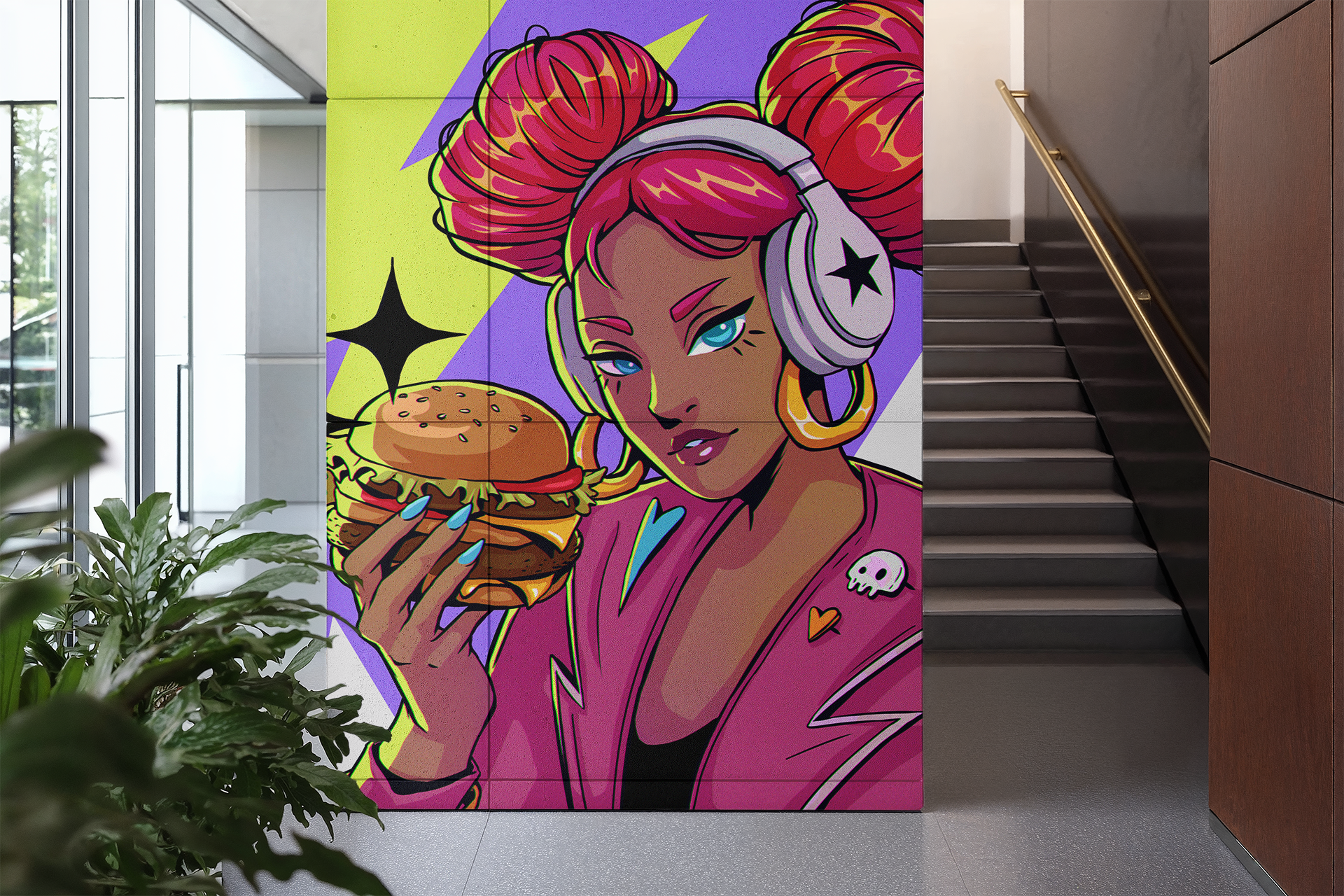 Ilustração para mural de bar e hamburgueria (ADA Music Bar)